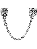 polished 925/- Sterling silver, partly blacked with embossed blossoms, with thread inside, size 5 x 6,8 mm, 2 elements linked with fine anchor chain, width 2 mm